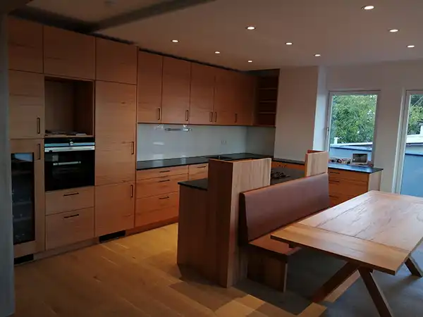 Um uns ein Bild von den örtlichen Gegebenheiten zu machen, besuchen wir Sie zuhause, beraten Sie in allen gestalterischen Fragen und fertigen auf Basis Ihrer Vorstellungen eine detaillierte Skizze an. Daraus entsteht der Plan. Bei der Fertigung der Möbel und Wohneinrichtung arbeiten wir eng mit Elektrikern und Glasern zusammen, mit dem Ziel, Ihnen Erzeugnisse von bester Qualität bieten zu können. Im Anschluss führen wir die fachgerechte Montage Ihrer neuen Möbel durch.
