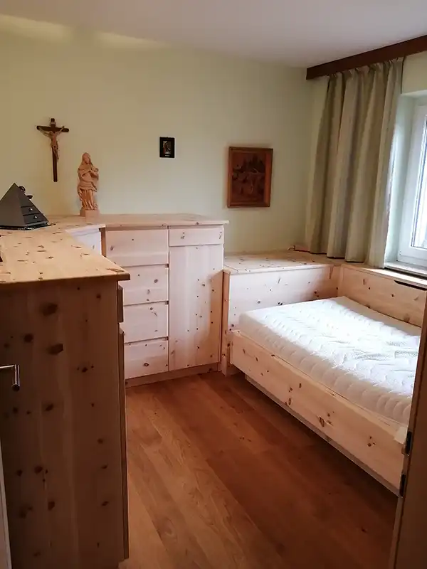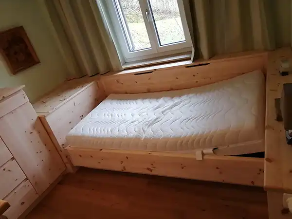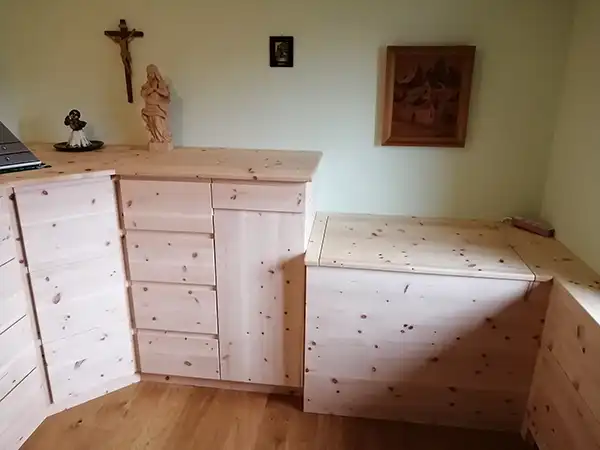 Vom Eichenschrank bis zum Zirbenholzbett, vom Sideboard bis zur Ofenbank – wir fertigen einzigartige Möbelstücke aus dem natürlichen Rohstoff Holz. Mit handwerklicher Präzision, Liebe zum Detail und nachhaltigen Materialien schaffen wir Unikate, die Ihren Wohnraum bereichern und ein Stück Natur in Ihr Zuhause bringen.